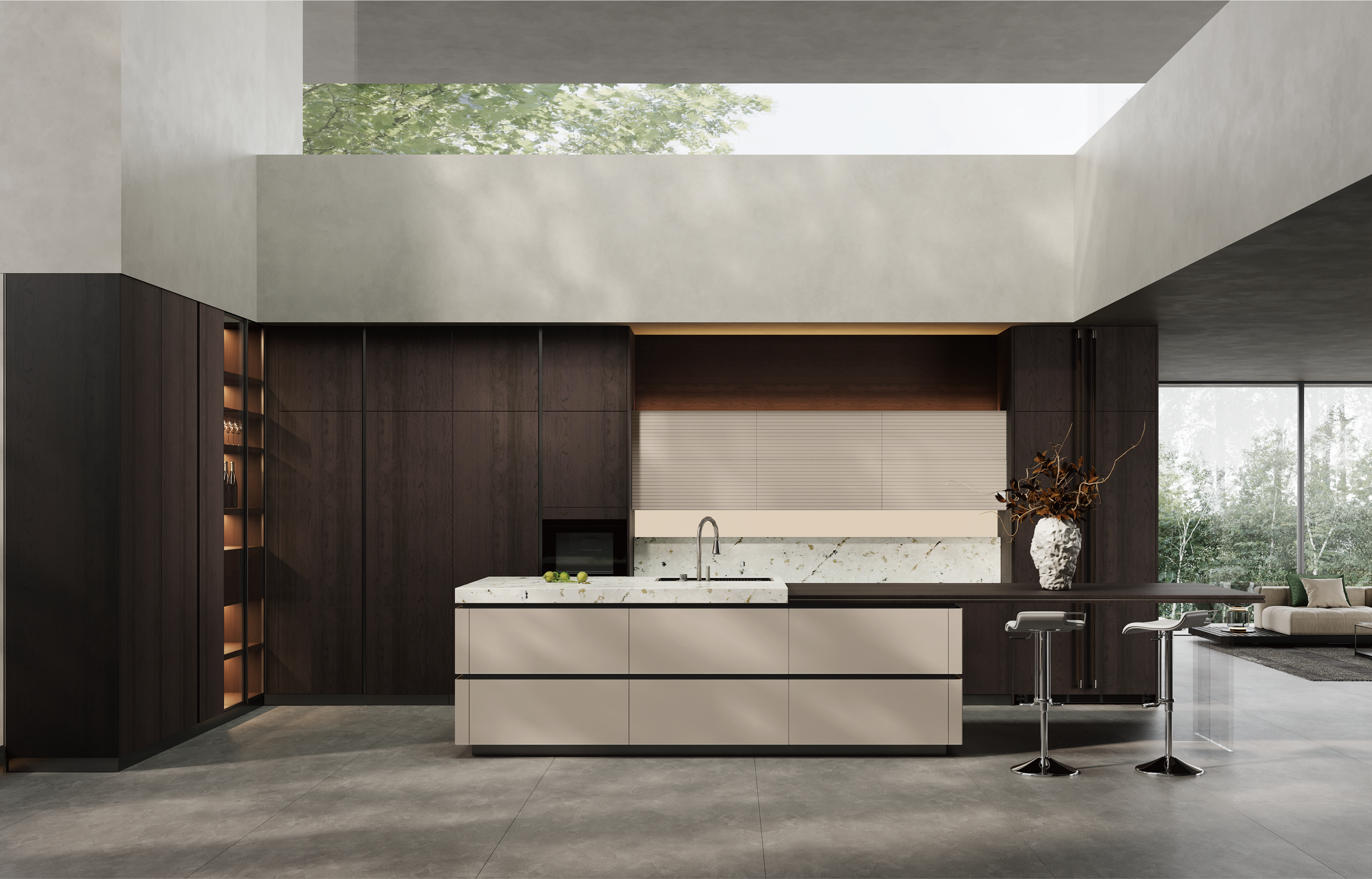 通过dcbox小金库厨柜量体裁柜,定制出适合主厨下厨的烹饪区和洗涤区的舒适高度。